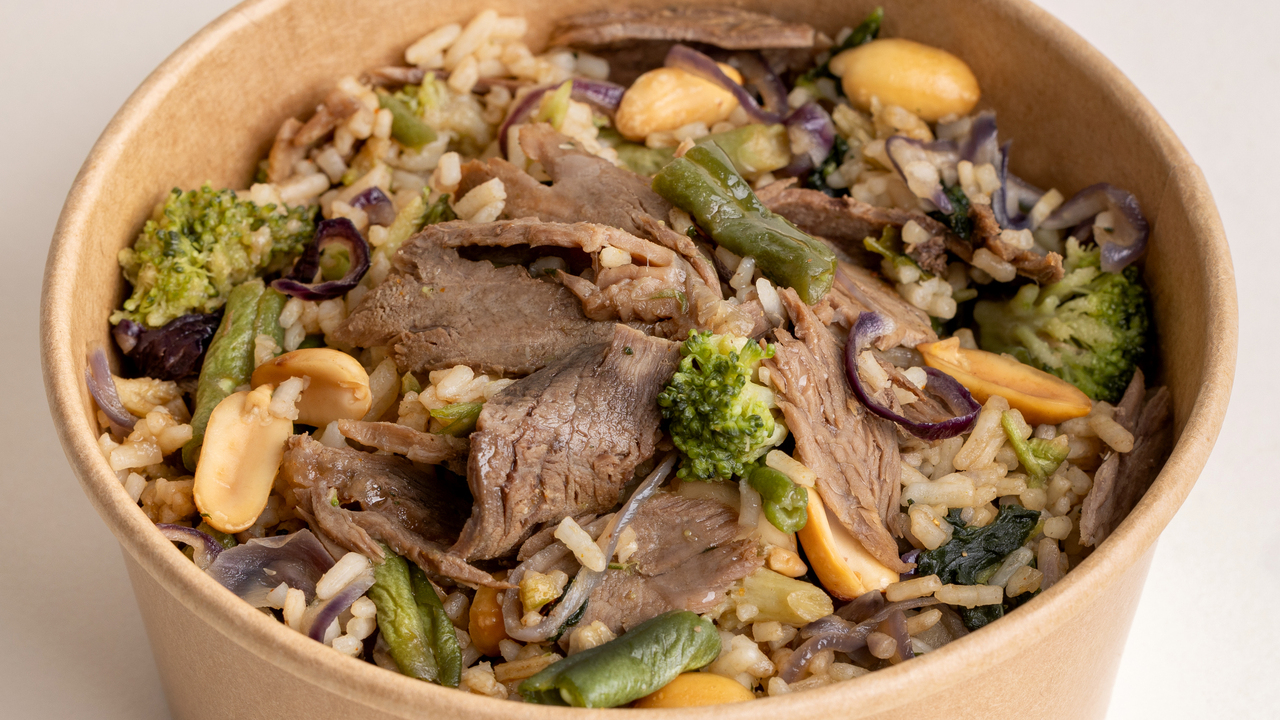 ארוחת קוסקוס טעימה עם עוף וירקות טריים.